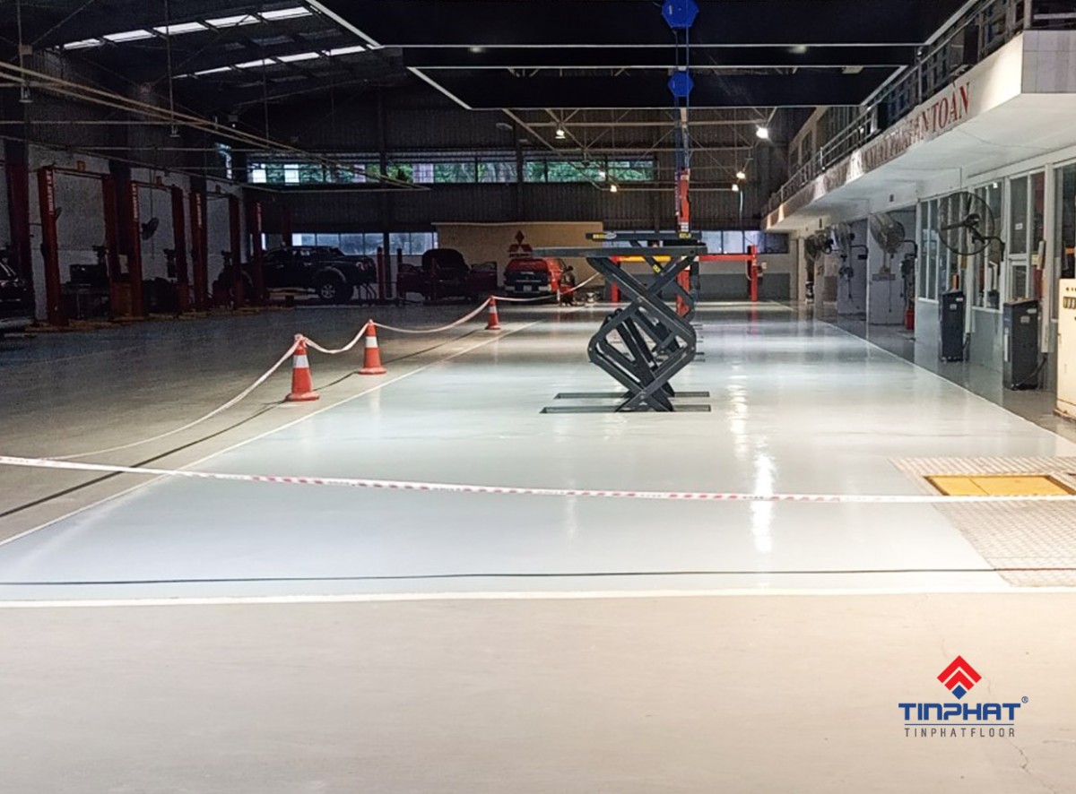 Sơn sàn epoxy tự san phẳng tại xưởng ô tô