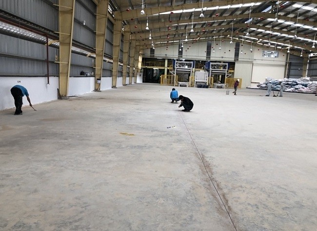 Để lớp sơn sàn PU bám chắc vào sàn nhà thì bước đầu tiên chúng ta cần phải vệ sinh bề mặt sàn cũng như tạo độ nhám. Tất cả những vết bẩn trên sàn bê tông cần phải được làm sạch, sau đó mài lại cốt sàn nhằm để tạo độ nhám nhất định cho bề mặt.