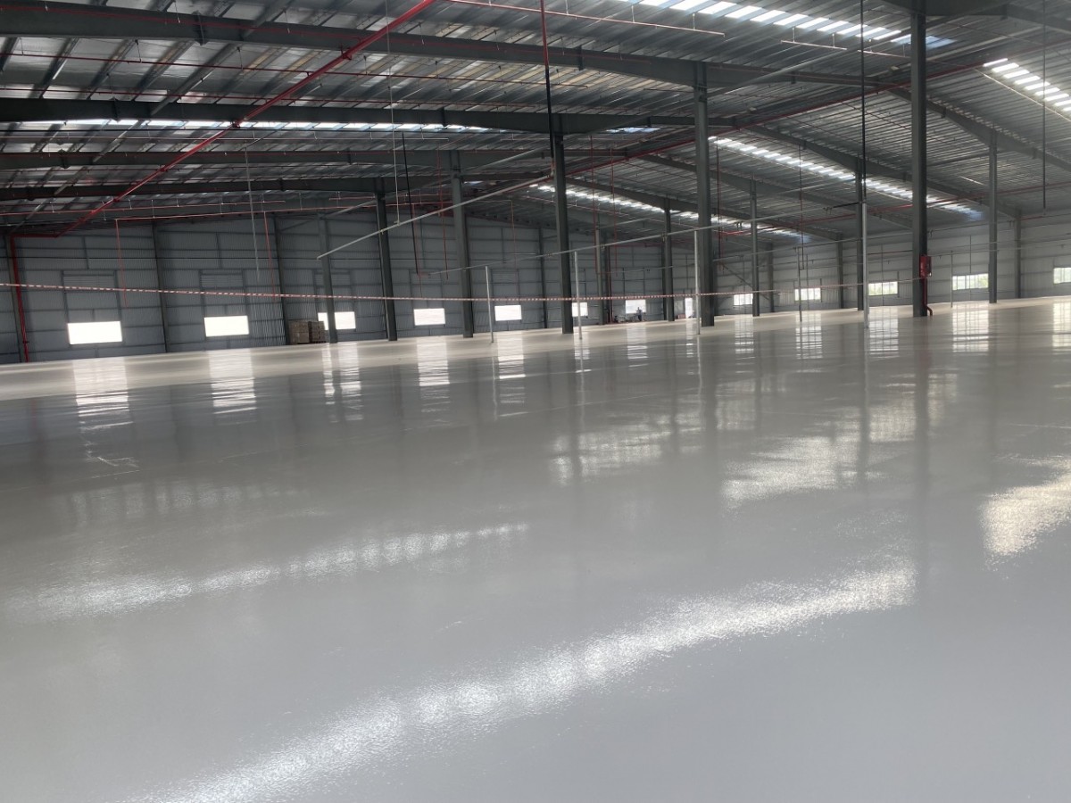 + Bạn cũng có thể sử dụng sơn epoxy gốc nước nếu nhà xưởng của bạn đã đổ bê tông nhưng không lót lớp nilon chống thấm nước. Vì sơn epoxy gốc nước cho phép bạn thi công trong điều kiện môi trường có độ ẩm cao.