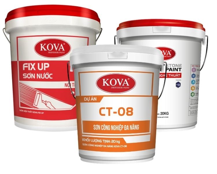 Sử dụng sơn chống thấm Kova cho hồ cá mang lại hiệu quả chống thấm tuyệt vời cùng màu sắc bắt mắt, giá cả hợp lý. Dòng sơn này thích hợp xử lý cho bề mặt bê tông, xi măng và thích ứng tốt với điều kiện khí hậu nắng mưa ở Việt Nam. Ưu điểm của sơn Kova có có độ bám dính tốt, phù hợp chống thấm cho hồ cá lộ thiên.