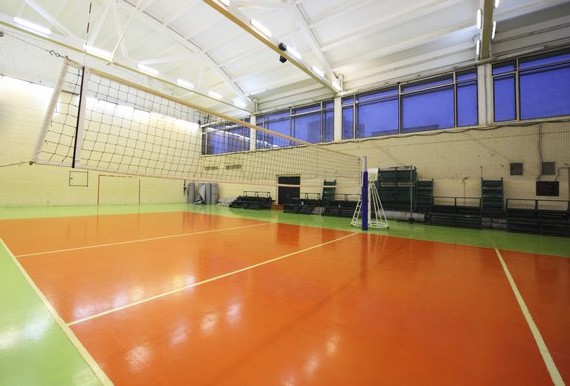 Sân được làm từ bê tông cốt thép hoặc bê tông thường, với lớp phủ sơn chuyên dụng.