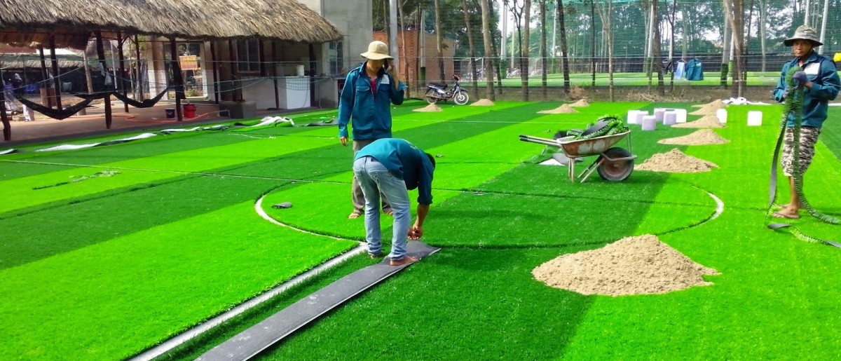 3. Quy trình thi công bề mặt của sân cỏ nhân tạo