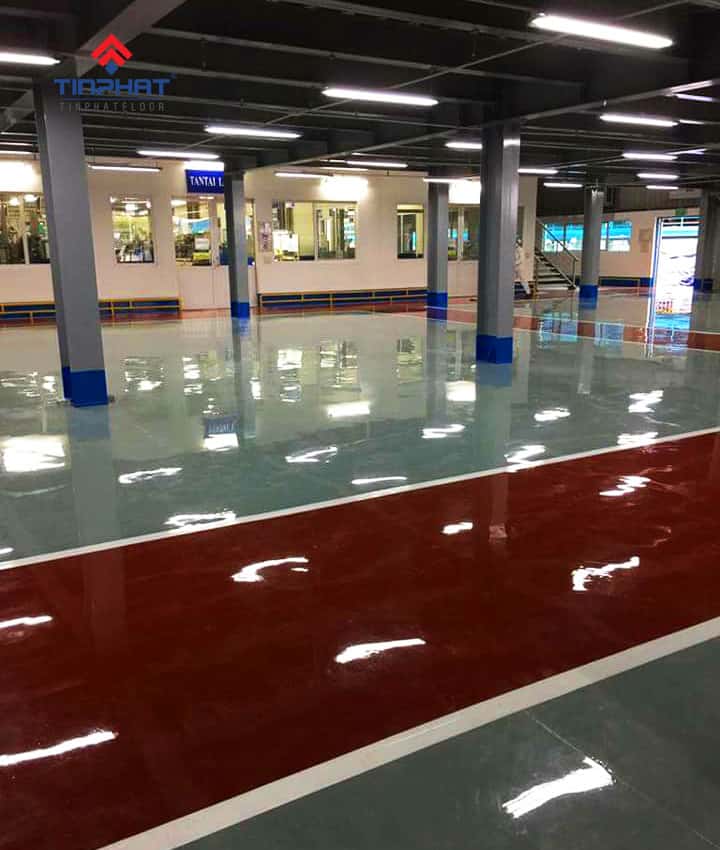 Thi công sơn epoxy ngày càng được ứng dụng nhiều trong thực tế nhất là trong lĩnh vực sơn sàn. Sơn epoxy với nhiều ưu điểm như chống trơn trượt, chống thấm, chịu tải trọng, chống mài mòn,… cùng độ bóng cao và rất nhiều màu sắc phù hợp với thiết kế. Sơn sàn là lĩnh vực phát triển tại Tín Phát với rất nhiều dự án. Nổi bật là dự án sơn sàn epoxy nhà máy Goshi Thăng Long – Nhật Bản.