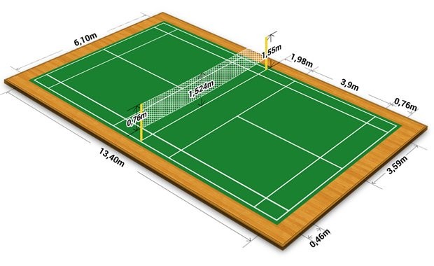 Các kích thước chuẩn quốc tế của sân cầu lông